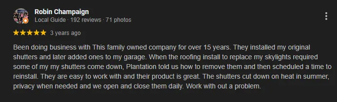 Transform your home with expertly designed plantation shutters, blinds, and shades — custom-fit, moisture-resistant, and installed by local professionals with 35+ years of experience.