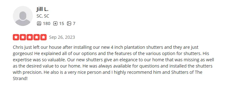 With over 35 years of experience, Shutters of the Strand has built a reputation for craftsmanship, reliability, and timeless design. We combine classic Southern style with modern materials to create plantation shutters, blinds, and shades that stand up beautifully to the coastal climate.